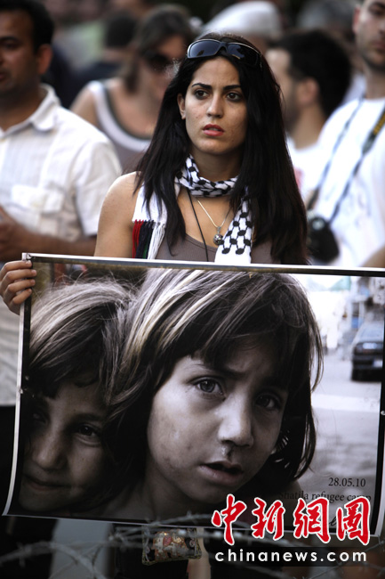 以色列海军31日对国际人道救援船队发动袭击,船上至少有9名支持巴勒斯坦的活动人士被以军打死,众多国家和国际组织纷纷表示“震惊”,多国民众走上街头,对袭击事件表示抗议。图为在塞浦路斯,民众在街头游行抗议。
