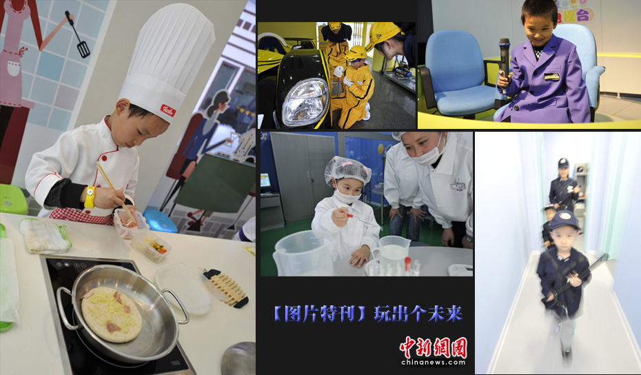 世博园里还有一块孩子专属的“领地”——育乐湾。设计者从孩子的认知视角出发,设计了25个具有行业代表性的职业体验场馆,包括报社、出版社、警署、消防局、医院、汽车维修保养、机器人制作公司等等。各个职业体验馆的许多道具都是真实的。 体验迷你世界烤一回比萨、开一回火车、录一期节目、走一次秀……在这座4200平方米的小城,孩子们在玩乐中体验着未来的职业目标。如果把世界博览会比作连接现实与未来的一座“桥”,那么儿童就是这座“桥”上最引人注目的群体。儿童,是人类希望的象征,是真正面向未来、掌握未来的人。中新网记者 王红纲 摄