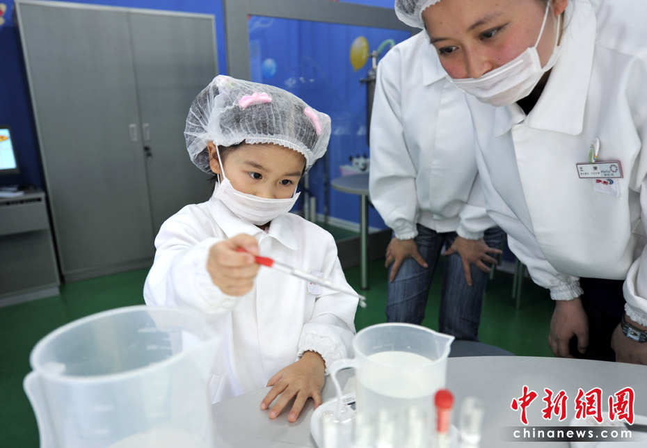 图为孩子在体验做一名营养师。 中新网记者 王红纲 摄
