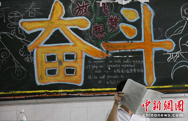 6月1日,广州市第四十七中学高三(一)班,高考日益临近,黑板上斗大的“奋斗”两个字就是一面警钟,让同学们不敢懈怠。夏宇/CFP