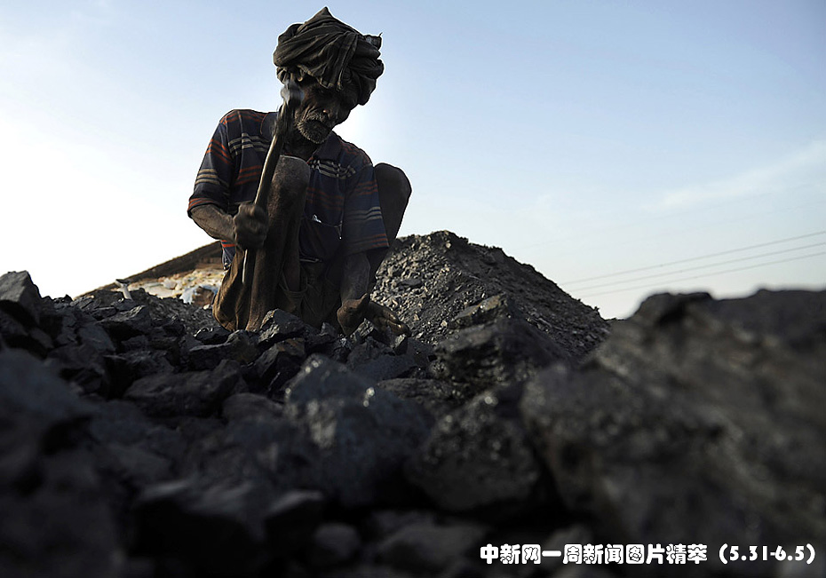 周五(4日),世界环境日前夕,一名印度工人在阿拉哈巴德郊区砖厂工作。