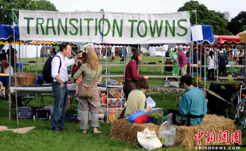 当地时间2010年6月6日,英国伦敦举行卡姆登绿色市集(Camden Green Fair),这是英国伦敦每年环保领域的“重头戏”。本届市集的主旨是要唤起大众对环境问题的关注,选择更加可持续发展的生活方式。据活动主办方预计,本届市集将吸引来自英国各地和世界各国的2万多人参加。图为展会上的城市转型策略“transition town”。Fiona/摄 Fiona 马小刚/文