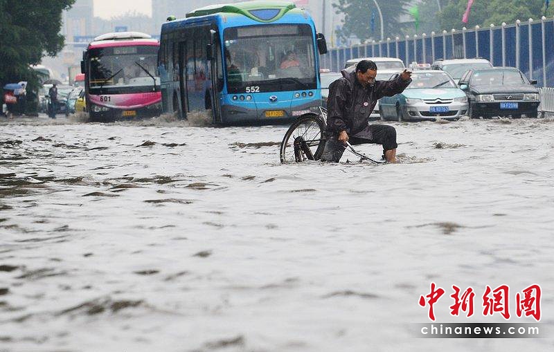 6月8日,武汉持续降雨,武昌徐东大街汪家墩段,300多米路面积水,最深处超过半米,车辆只得缓慢涉水而行。承影/CFP