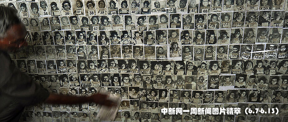 周二(8日),在印度,一名男子轻轻擦拭老照片,照片中的人们死于1984年博帕尔发生的毒气泄漏事件。法庭判裁定七名前联合碳化物公司(Union Carbide)印度分公司的职员有罪。