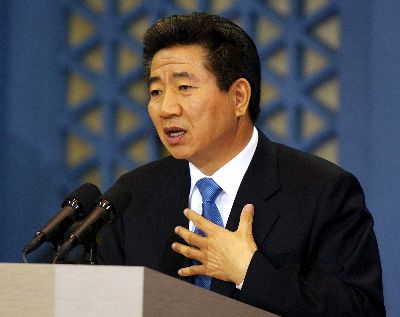 2004年3月11日,韩国总统卢武铉在总统府青瓦台举行紧急记者招待会,就其亲信收取非法政治资金和其亲属受贿等问题向国民进行了公开道歉。中新社发 Ic/cnsphoto 摄