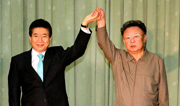 2007年10月3日,朝鲜领导人金正日与韩国总统卢武铉在平壤举行朝韩首脑会议。
