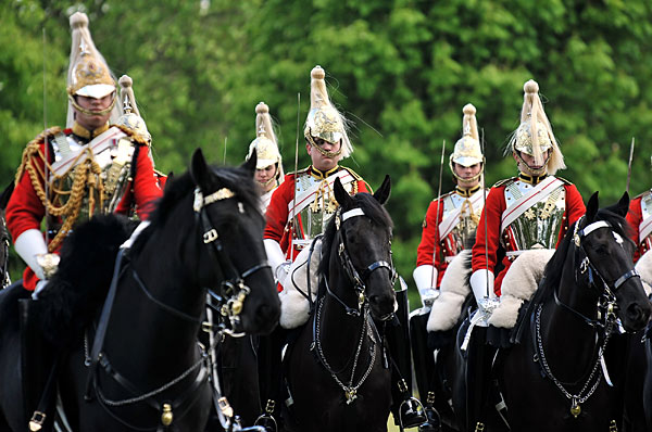 5月21日,英国伦敦海德公园举行了一场家庭骑兵检阅活动。英国皇家骑兵团进行了标准礼节表演等节目。