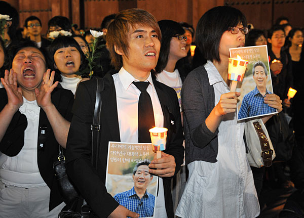 5月23日,韩国前总统卢武铉的支持者在韩国各地纷纷举行悼念活动。