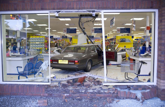 英国汉普郡一名50岁男子20日步入了当地一家大型超市,向售货员表示要买酒喝,但遭到拒绝,因为他看起来已经醉的差不多了。但没想到这名醉汉竟返回停车场,发动他的轿车径直向超市冲去。