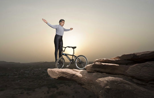 组图:印度奇人悬崖旁用自行车练瑜伽(3)