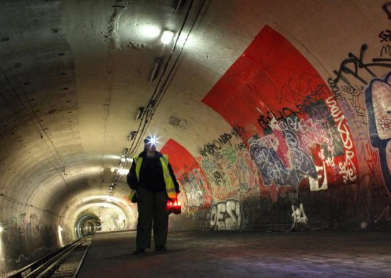 在巴黎100多年的地铁发展史中,车站扩建整修是很平常的事。但随着线路的变更和一些历史原因,出现了一些被遗弃的车站,年久失修,这些车站就像幽灵一样,存在于巴黎地铁这个庞大的网络之间。2009年4月6日,一名巴黎公交公司的员工巡视Haxo车站。