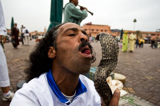组图:摩洛哥街头迷恋玩蛇的魔术大师
