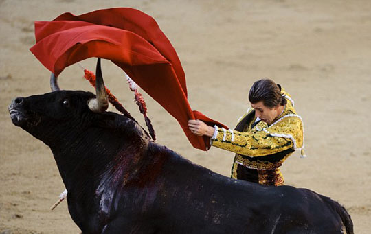 据英国媒体29日报道,近日在一场斗牛比赛上,一位名叫Israel Lancho的西班牙斗牛勇士,在激斗公牛时,被公牛的尖角扎出一道长达8英寸(约20公分)的口子。不可思议的的是他居然活了下来,被送往马德里医院的加护病房。