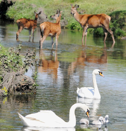 据英国媒体报道,英国30日的气温升至26度,不仅人们出去晒太阳,就连动物们也想去水里凉快下。一只年幼的小鹿在伦敦的Richmond公园里想小浸鹿蹄,不幸地是,该地盘内的主人天鹅却并不想和小鹿分享这一湖水,立刻对准小鹿的耳朵猛啄,用力捍卫自己的领土。尽管小鹿在体形上占据优势,但是小鹿最终还是不敌凶悍的天鹅,落慌而逃。