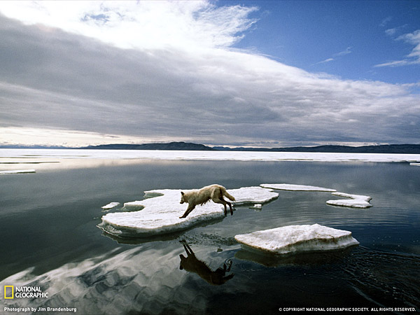 “跳跃水面的北极狼,加拿大” 作者:Jim Brandenburg