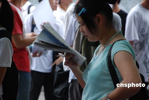 图为6月7日,广西桂林中学考点的考生临阵磨枪,抓紧最后的时间复习功课。中新社发 周利朔 摄