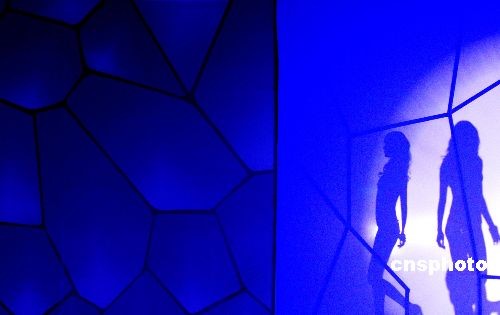6月8日,几位模特在国家游泳中心展示泳装。当日,第六届中国泳装设计大赛在北京国家游泳中心“水立方”举行,这也是在“水立方”举办首个时尚活动,吸引众多观众和媒体的关注。图为模特在水立方展示第6届中国泳装设计大赛决赛作品。中新社发 钱兴强 摄