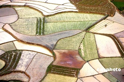 6月8日,广西凤山县平乐瑶族乡谋爱村群众在田园里劳作。芒种过后,凤山县乡村各族群众抓住降雨天气雨水充足时机,集中人力物力,掀起夏耕夏种的热潮,美丽如画的田野上,到处是各族群众忙碌的身影。中新社发 周恩革 摄