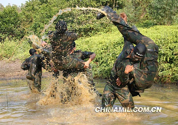 近日,记者怀着神秘好奇之心走进这支神秘的队伍,真正领略了他们独特的风采,亲眼目睹了接近人体极限的训练,亲身体验孤岛生存和置之死地而后生的感觉,用镜头定格他们“兽营”式训练的点点滴滴。(余黄伟、郑昭聪 摄)