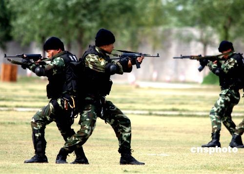 驻河北武警某部6月9日下午接受参加首届东盟与中日韩(10+3)武装部队非传统安全论坛代表检阅,并演示训练成果。论坛将围绕“东盟与中日韩武装部队非传统安全交流与合作”主题,就对非传统安全问题的基本知识、东盟与中日韩武装部队共同应对非传统安安全威胁的合作与途径、东盟与中日韩武装部队非传统安安全论坛建设构想等问题进行广泛深入的研究交流。 中新社发 宋吉河 摄