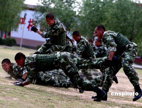 驻河北武警某部6月9日下午接受参加首届东盟与中日韩(10+3)武装部队非传统安全论坛代表检阅,并演示训练成果。论坛将围绕“东盟与中日韩武装部队非传统安全交流与合作”主题,就对非传统安全问题的基本知识、东盟与中日韩武装部队共同应对非传统安安全威胁的合作与途径、东盟与中日韩武装部队非传统安安全论坛建设构想等问题进行广泛深入的研究交流。 中新社发 宋吉河 摄