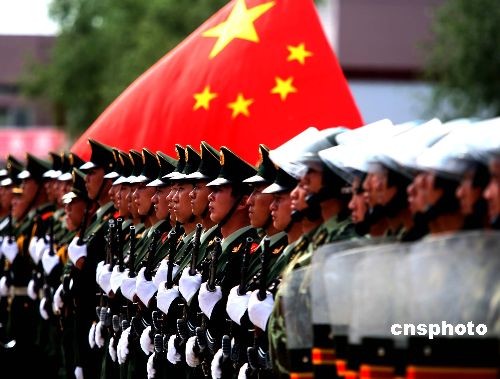 驻河北武警某部6月9日下午接受参加首届东盟与中日韩(10+3)武装部队非传统安全论坛代表检阅,并演示训练成果。论坛将围绕“东盟与中日韩武装部队非传统安全交流与合作”主题,就对非传统安全问题的基本知识、东盟与中日韩武装部队共同应对非传统安安全威胁的合作与途径、东盟与中日韩武装部队非传统安安全论坛建设构想等问题进行广泛深入的研究交流。 中新社发 宋吉河 摄