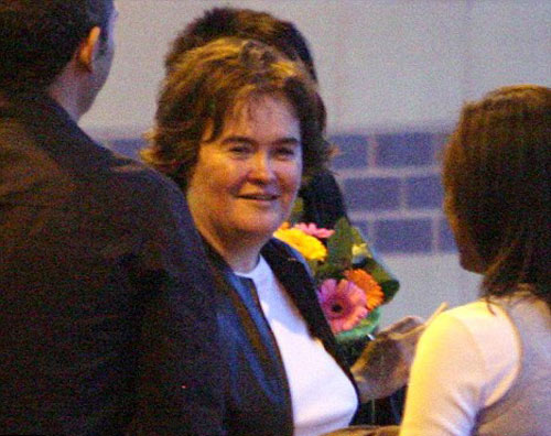 据英国媒体报道,当地时间12日晚,英国“选秀歌手”苏珊大妈如约出席选秀节目《英国达人》在伯明翰的首场巡演,引爆全场。图为在表演前苏珊与朋友们聊天。