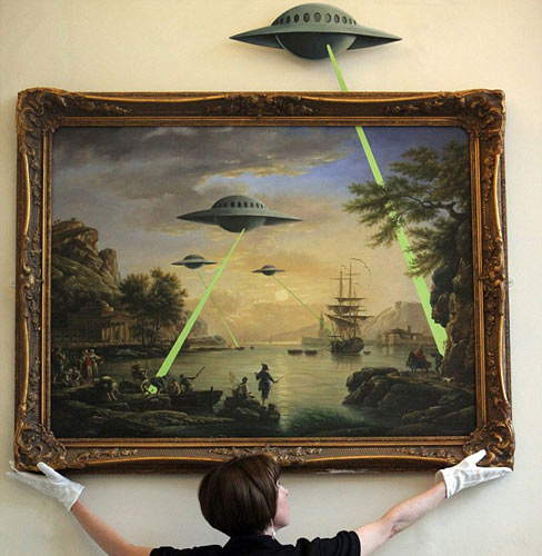 据英国媒体报道,6月12日,在英国的布里斯托,英国著名涂鸦艺术家班克斯(Banksy)的作品在布里斯托博物馆里展出。