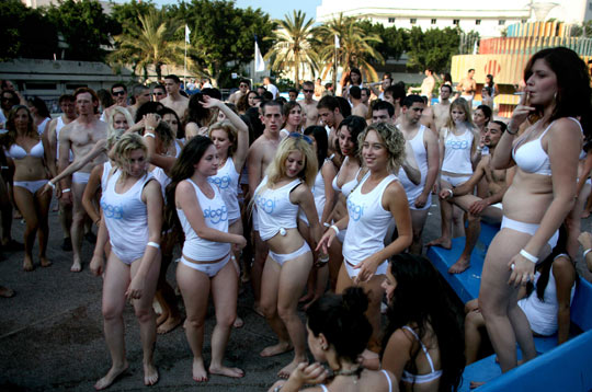 09年5月27日,在以色列特拉维夫的迪岑哥夫大广场上,上演了一场十分特殊的盛大Party。主办方要求所有参与者都要身穿白色内衣。