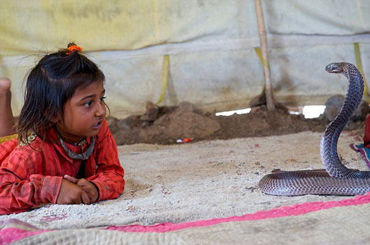 印度一个部落里,所有的儿童都不怕蛇,因为他们在2岁时就开始和蛇接触。