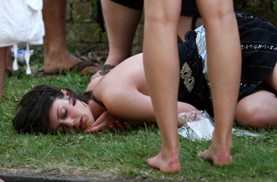 据英国媒体报道 英国著名学府剑桥大学学生为庆祝考试完毕,于14日举行有80年历史的“自杀周日”豪饮狂欢派对,大玩恶心游戏,场面几近失控。不少女生穿着比基尼,在周日家庭日的大白天喝得酩酊大醉,在街上随处呕吐,行径令人侧目。