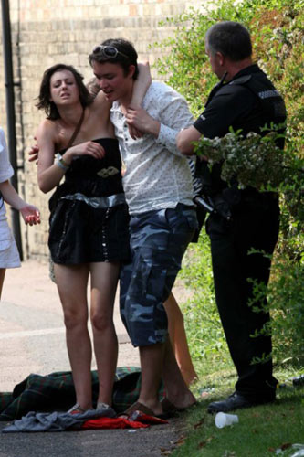 据英国媒体报道 英国著名学府剑桥大学学生为庆祝考试完毕,于14日举行有80年历史的“自杀周日”豪饮狂欢派对,大玩恶心游戏,场面几近失控。不少女生穿着比基尼,在周日家庭日的大白天喝得酩酊大醉,在街上随处呕吐,行径令人侧目。