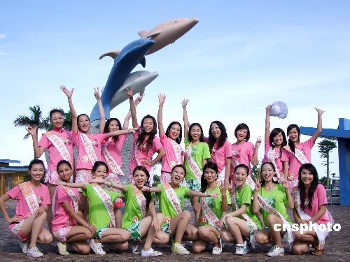 2009年6月17日,进入世界休闲小姐中国区总决赛的来自全国各地的20位佳丽,在广西钦州三娘湾海边进行外景拍摄。6月20日,世界休闲小姐中国区总决赛将在广西电视台1000平米演播厅进行,《时尚中国》栏目组全程录播。中新社发 骆文刚 摄