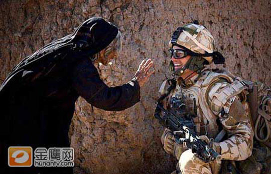阿富汗南部的新兵与当地老妇人——战争之中也有和平。