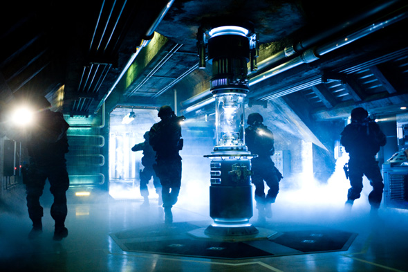 影迷们翘首以盼的好莱坞大片《变形金刚2》将于6月24日全球同步上映,《变形金刚》的第二部将会比第一部更加壮观,观众们将看到更多巨大的机器人,故事主线会更加科幻。图为该片的精彩剧照。