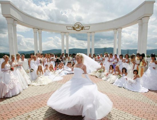 6月21日,在俄罗斯西伯利亚城市克拉诺亚尔斯克,已婚的女子重新穿上婚纱,参加一个名为“新娘游行”活动,重温结婚时的美妙瞬间。