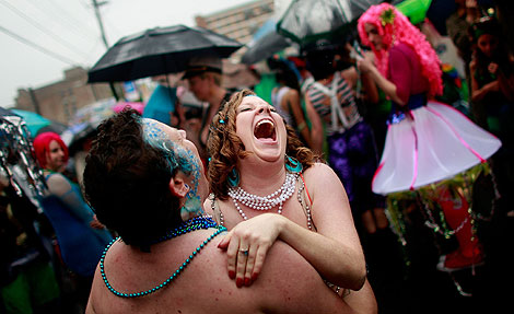 美国纽约科尼岛一年一度的美人鱼大游行日前举行。