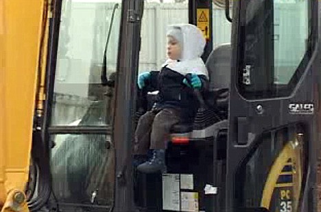 俄罗斯有一名3岁大的小男孩,不像普通的男孩子喜欢玩具车,他玩的是货真价实的大型挖土机,并且有模有样的驾驶起来,看起来就像专业人士。