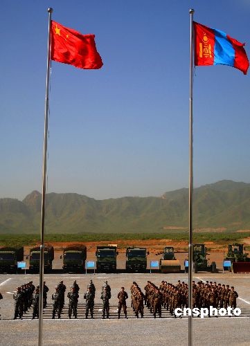 6月28日,中国蒙古“维和使命--2009”维和联合军事训练在北京地区某训练场拉开序幕,这次联合训练按照联合国框架下维和分队担负的任务分理论研究、共同训练、综合演练三个阶段展开。中新社发 宋吉河 摄