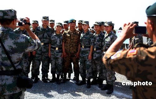 6月28日,北京持续高温天气,中国和蒙古“维和使命--2009”维和联合军事训练在北京地区某训练场举行开训仪式。这次联合训练按照联合国框架下维和分队担负的任务,分理论研究、共同训练、综合演练三个阶段展开。综合演练阶段将以执行联合国框架下维和任务为背景,演练执行运输与警戒防卫任务,中方参训分队主要由北京军区某集团军所属部队组成。中新社发 宋吉河 摄