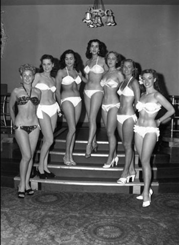 1951年伦敦第一届世界小姐大赛,参加选美的姑娘们被禁止穿比基尼。此时连体泳衣依然盛行,比基尼相继在比利时、意大利、西班牙以及澳大利亚被禁止,梵蒂冈认为穿比基尼有罪。