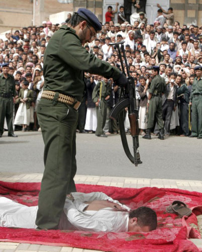 据英国媒体7日报道,日前,强奸并谋杀了一名11岁男孩的也门男子当街被执行了枪决。他在被游街示众后,在众目睽睽之下被行刑者击中头部枪决。数百名旁观者目睹了这一可怕场面。