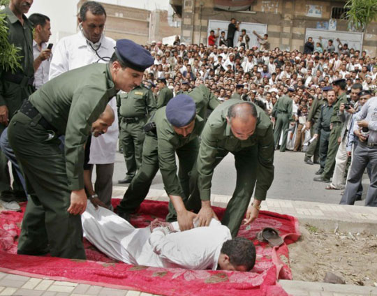 据英国媒体7日报道,日前,强奸并谋杀了一名11岁男孩的也门男子当街被执行了枪决。他在被游街示众后,在众目睽睽之下被行刑者击中头部枪决。数百名旁观者目睹了这一可怕场面。