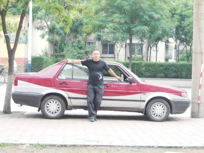 7月7日,辽宁鞍山刘明强3分钟内将车停在一棵树和电线杆中间,前后车距超过10厘米。(图片来源:中新网社区)