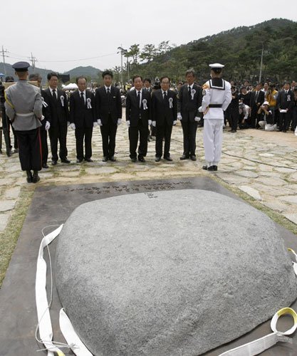 组图:韩国前总统卢武铉骨灰下葬仪式举行(5)