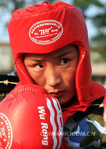 “海军十大杰出青年”敖腾格日乐正在进行拳击训练