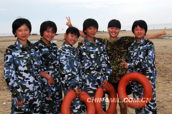 中国女子海军陆战队生活瞬间——下海游泳前留个影