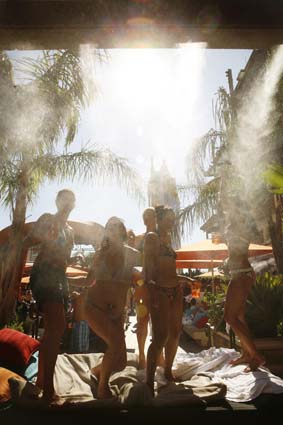 在美国赌城拉斯维加斯的威尼斯人赌场饭店,有一个独一无二的露天泳池,它没有幽静的花园,也没有海豚表演,在这里只允许成人入内,在泳池入口,有工作人员负责检查每个人的身份证,以防止未成年人进入。这里每个周末都会举行狂欢Party。