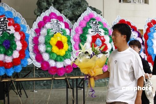 7月12日,北大师生和社会公众排队前来悼念国学大师季羡林先生。北京大学百年纪念讲堂南大厅季羡林先生灵堂当天开始接受季老生前友好、广大师生和社会公众的吊唁。7月11日上午,北京大学资深教授、国学大师季羡林先生在北京301医院辞世,享年98岁。中新社发 郑雄增 摄