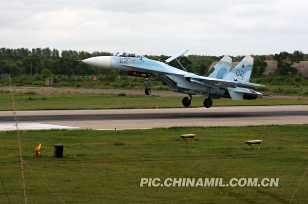 据了解,俄参演空军飞机原定于13日到达演习地域,后来由于天气等原因,才推迟到今天。他们是14日上午9点05分从俄罗斯的沃兹日阿耶夫卡机场起飞的。俄方这次参演的22架飞机,其中有5架苏-27歼击机、5架苏-24轰炸机、5架苏-25强击机和5架米-8直升机。这次来的2架伊尔-76运输机主要是运输航空弹、70名技术保障人员及其他相关物资。